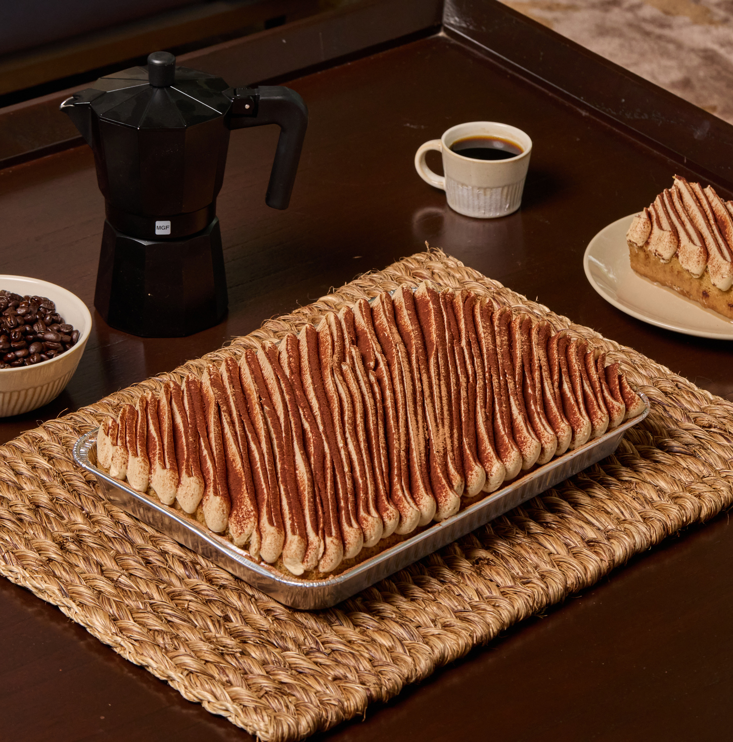 Nuestra versión del tiramisú italiano lleva un delicioso pan de vainilla en molde rectangular, perfectamente empapado con jarabe de tres leches y café. Lo cubrimos con un suave betún de queso crema sabor café y un generoso espolvoreado de cacao en polvo, que equilibra el dulzor del postre